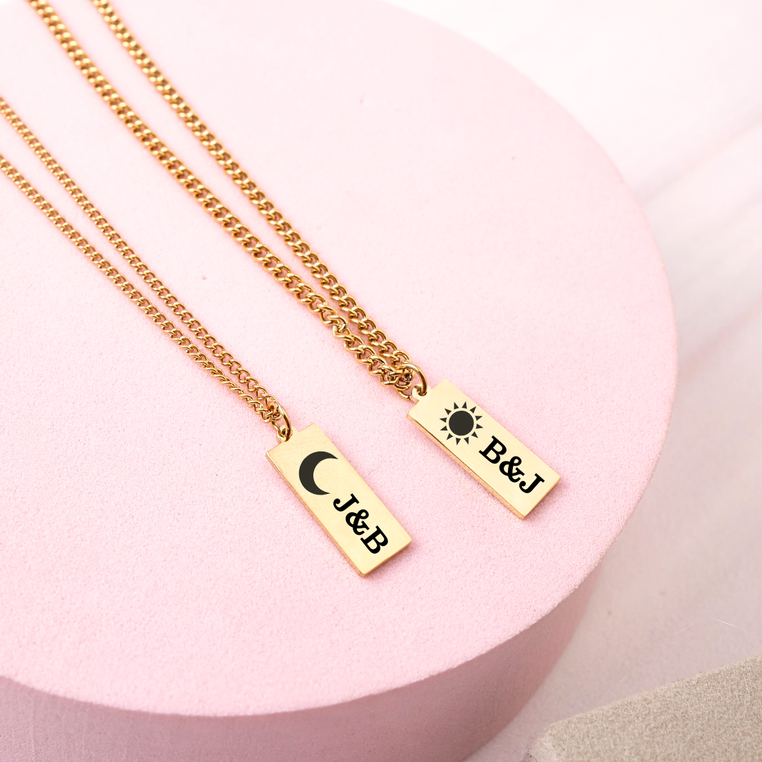 Dos collares que se complementan como el día y la noche. Diseñados para representar la conexión, el equilibrio y el vínculo único entre dos personas. Personalizados con iniciales, símbolos o una fecha especial y convierte este set en un recordatorio diario de su historia compartida.
