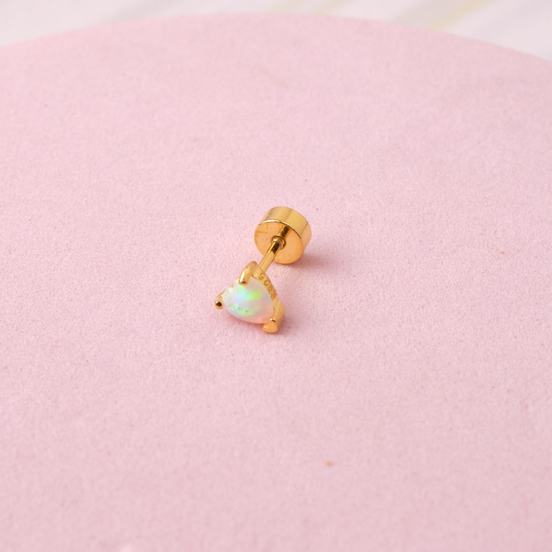 • Piercing para oreja de plata con baño en oro y ópalo.